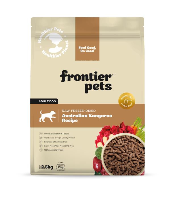 Introducing our newest addition to the Frontier Pets Freeze-Dried Dog Food range. A Premium Single Protein recipe specifically formulated for all breeds of adult dogs and sourced from wild caught, human grade Australian Kangaroo.