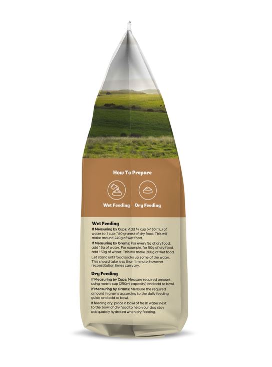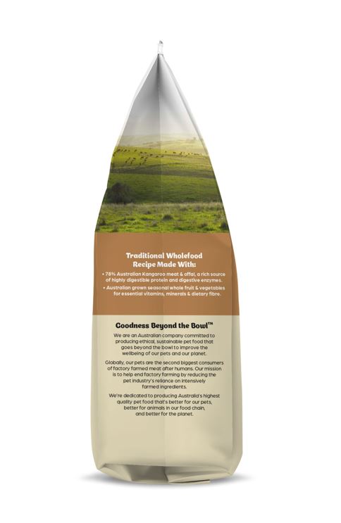 Our freeze-dried raw Kangaroo dog food can be fed wet (with water added) or dry (as packed). If feeding Kangaroo Dog Food dry, ensure plenty of fresh water is nearby so that your dog stays adequately hydrated.
