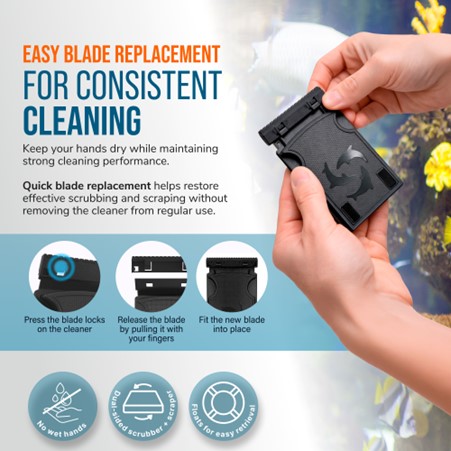 These ABS replacement scraper blades are designed with an ultra low profile making it easy to clean the hard to reach areas of the tank! Blades are interchangeable and replaceable.